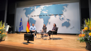 As part of the German Federal Government’s Open Day on August 23 and 24, 2025, the Federal Foreign Office invited guests to a special “State Visit.” In the Weltsaal, Ulrike Klinger (University of Amsterdam) and Andreas Nitsche (LiquidFeedback, PERYCLES) discussed the question: “Artificial Intelligence – Opportunity or Threat to Democracies?” The conversation was moderated by Siyuan He (Federal Foreign Office).